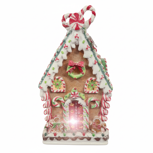 Candy Cane Themed Gingerbread House (Light Up) - 370mm